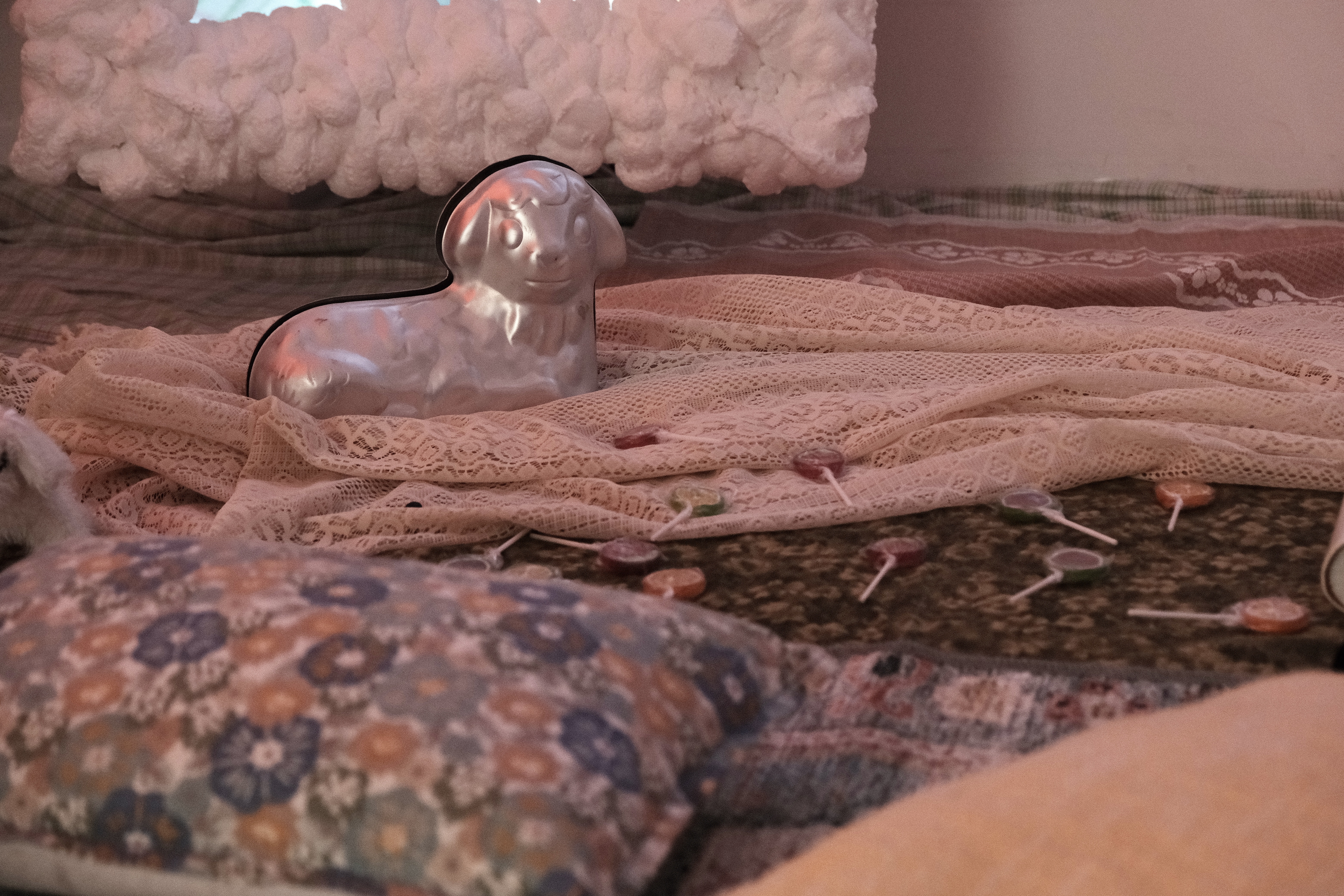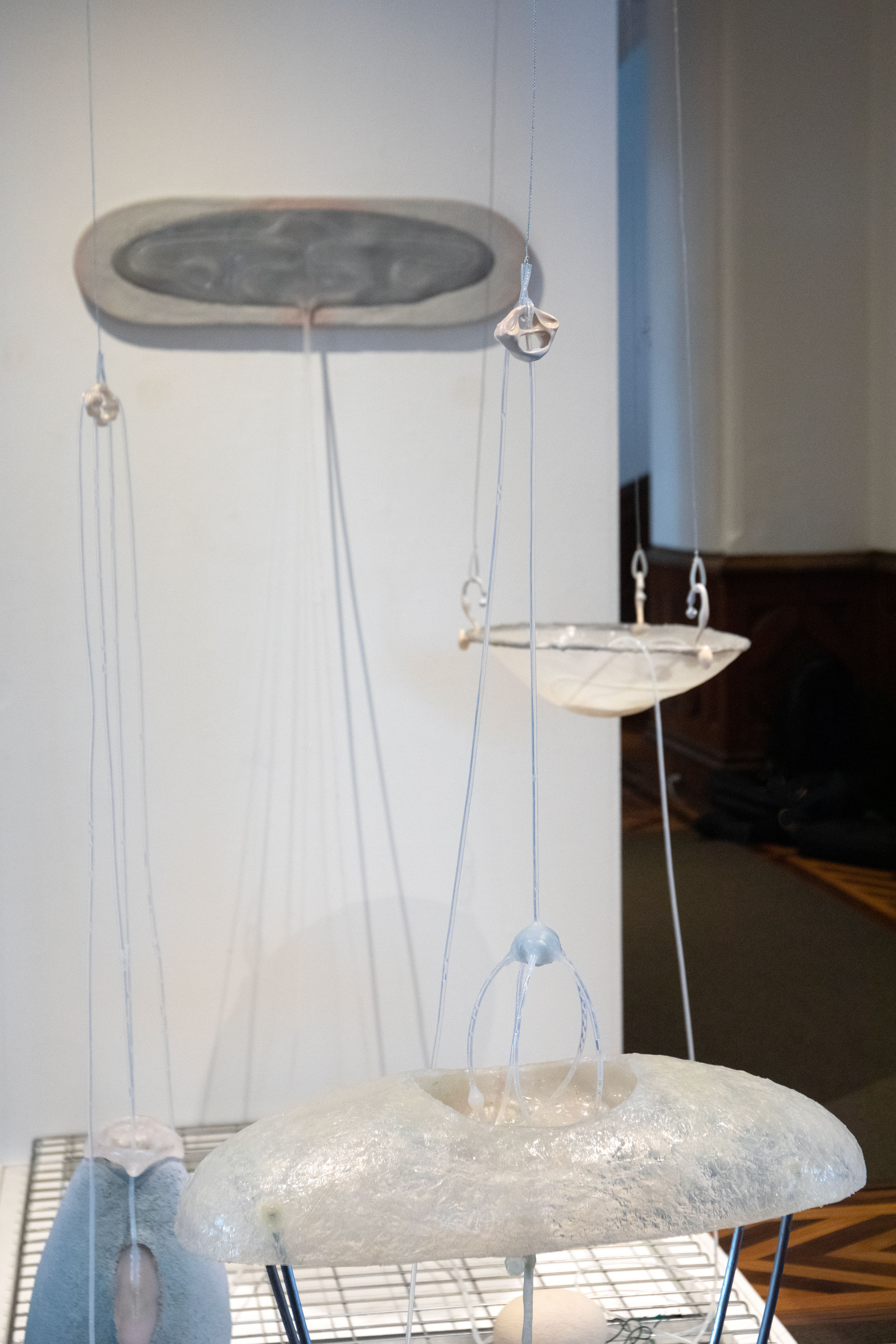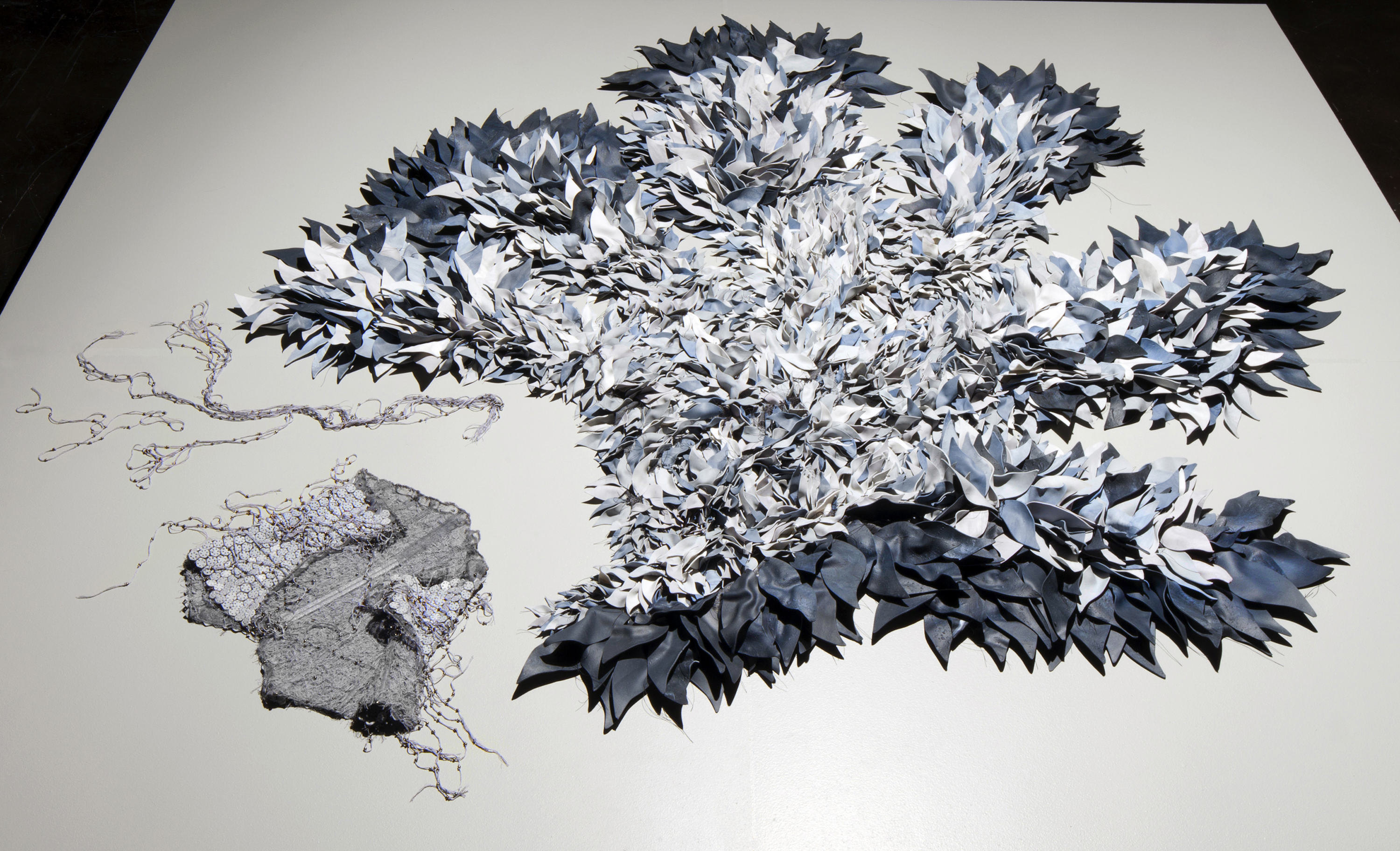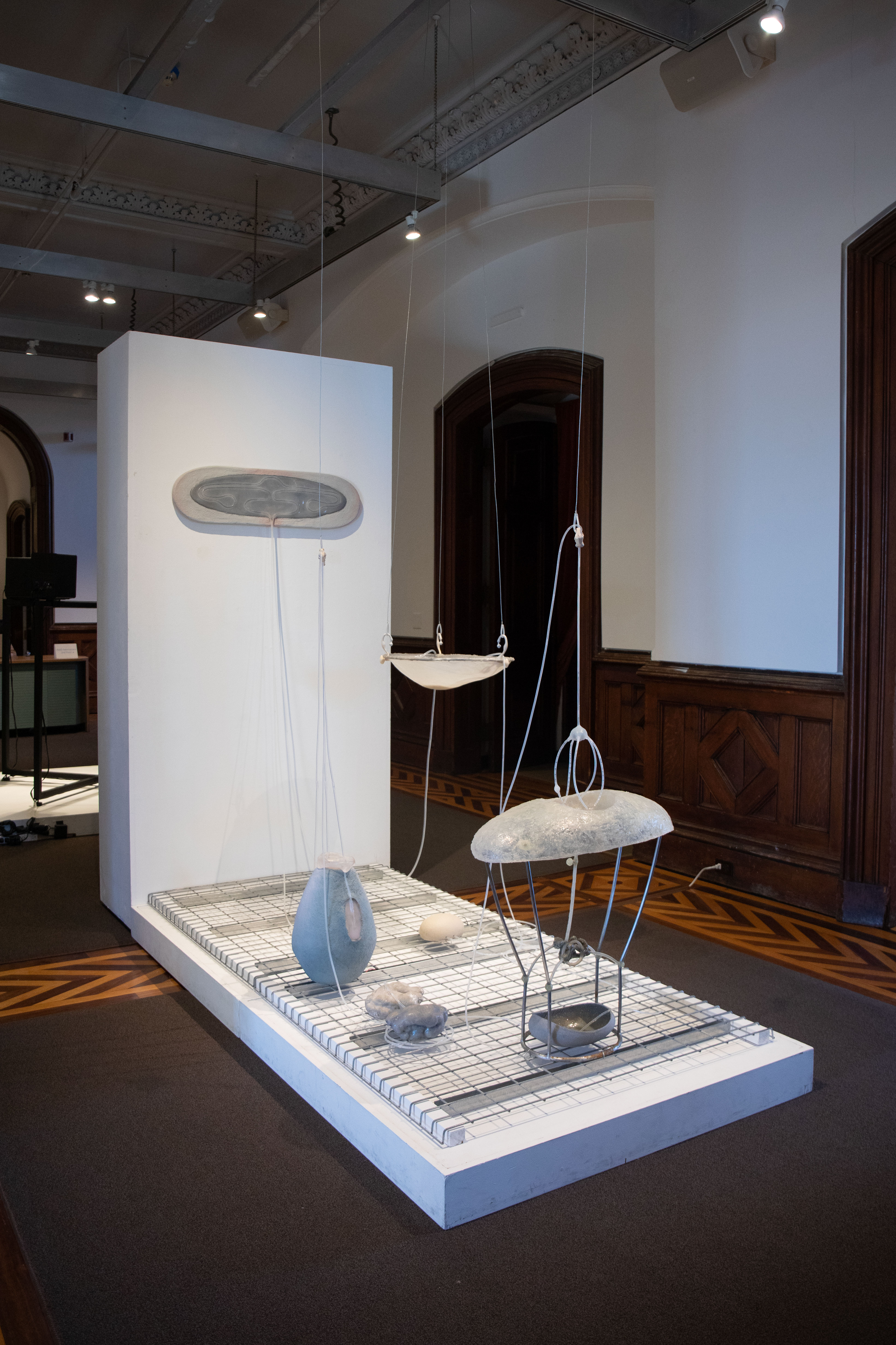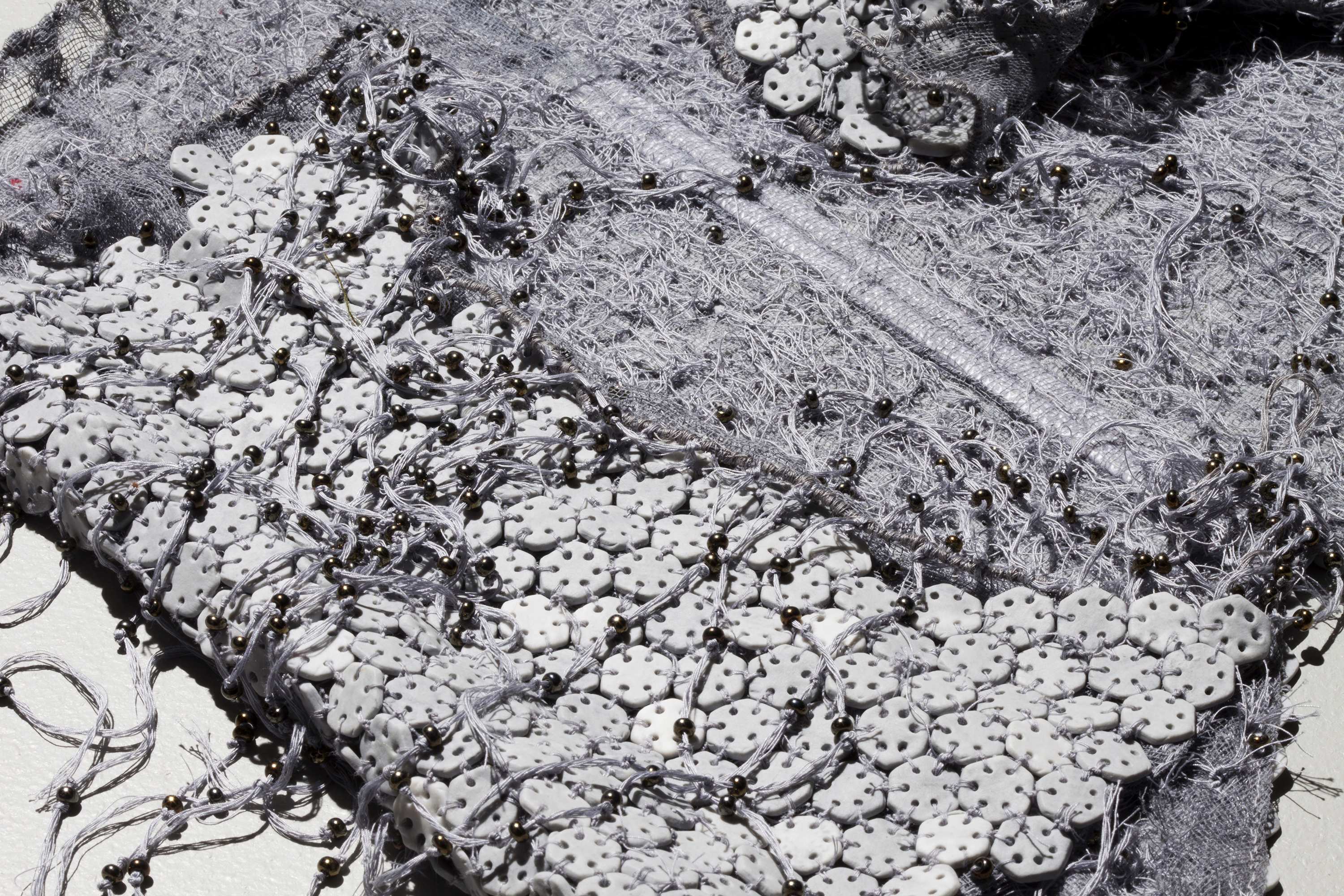 by Lee Renninger, Porcelain, fiber, stain, glass beads, 96x91x16 in (platform), collection of the Mississippi Museum of Art, 2011, NFS