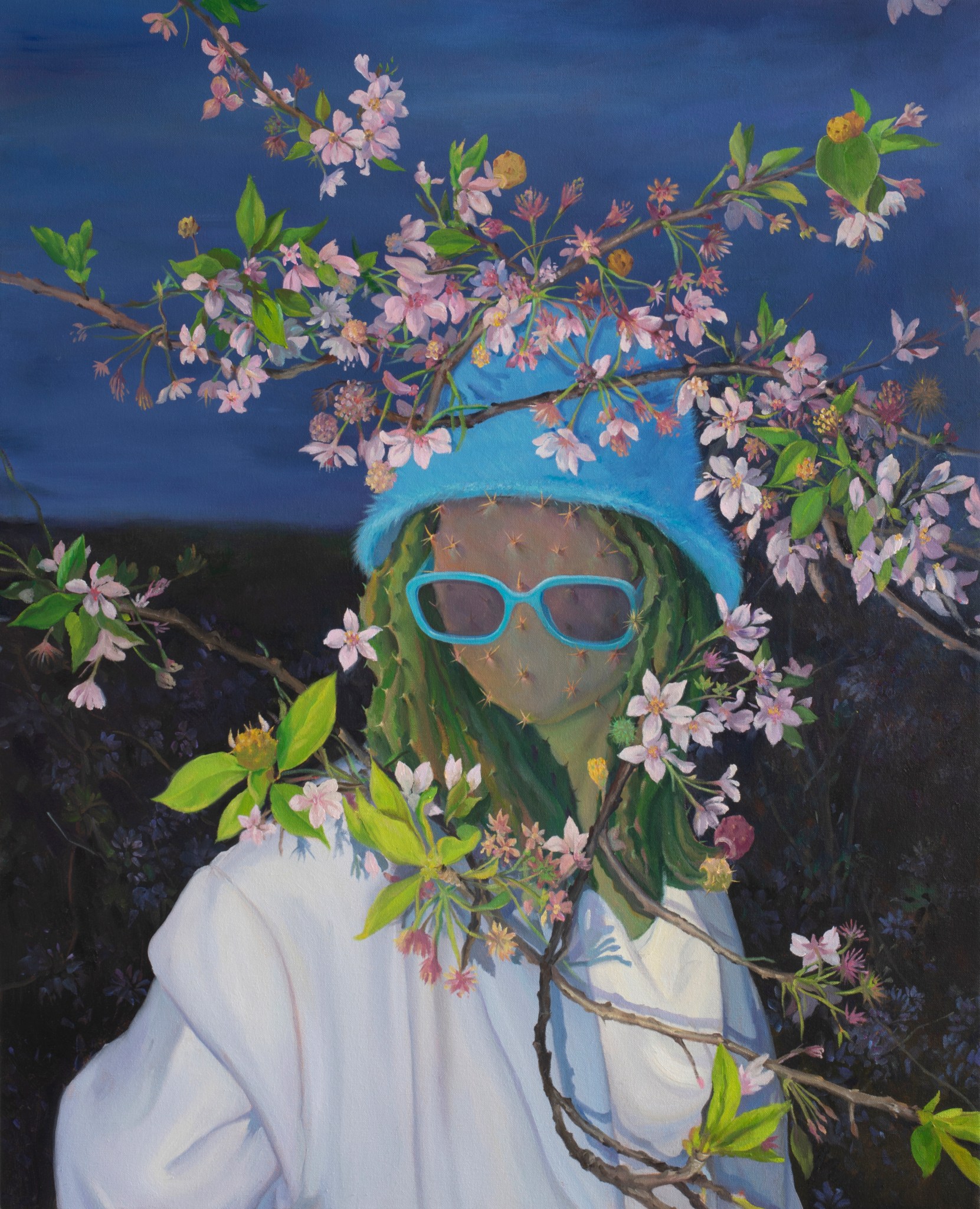 Jingyi Wang (Chinese, b. 1989) is a New York-based visual artist who specializes in oil painting. Her artworks focus on the relationship between nature and culture. Observation and perception are the inspiration for her artistic creation. She associates the fragile with the acute, the serious with the humorous tones, the poignant with the longing. cacti-human beings reflect the biological and psychological aspects of life, approaching the subtle and intimate intersubjectivity of humanity. With these elements and colors, Jingyi Wang would like to extend human bodies to the ground and mother nature, creating space for dialogue and collaboration among humans and nature.