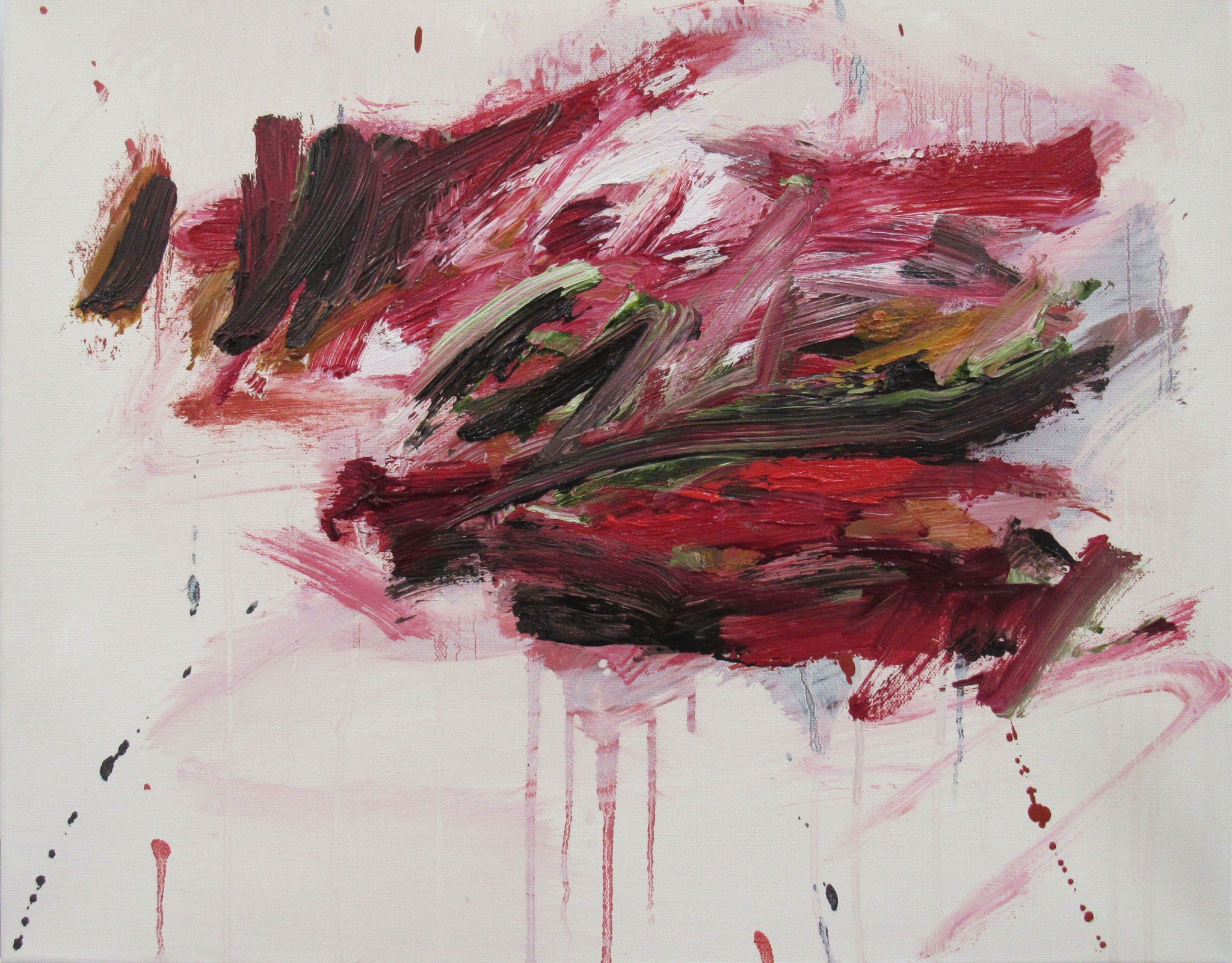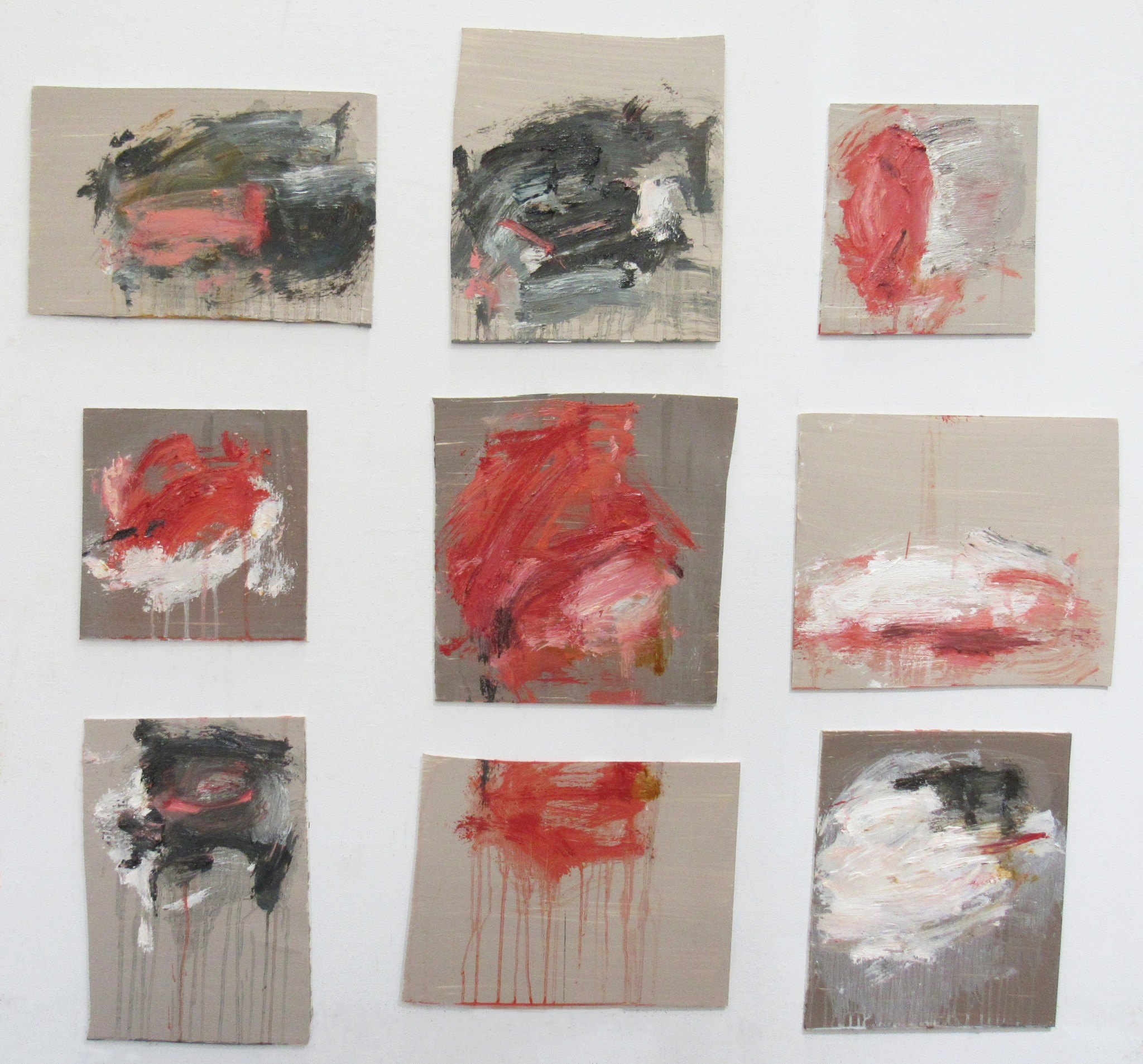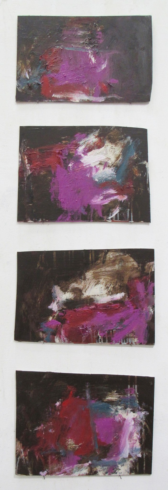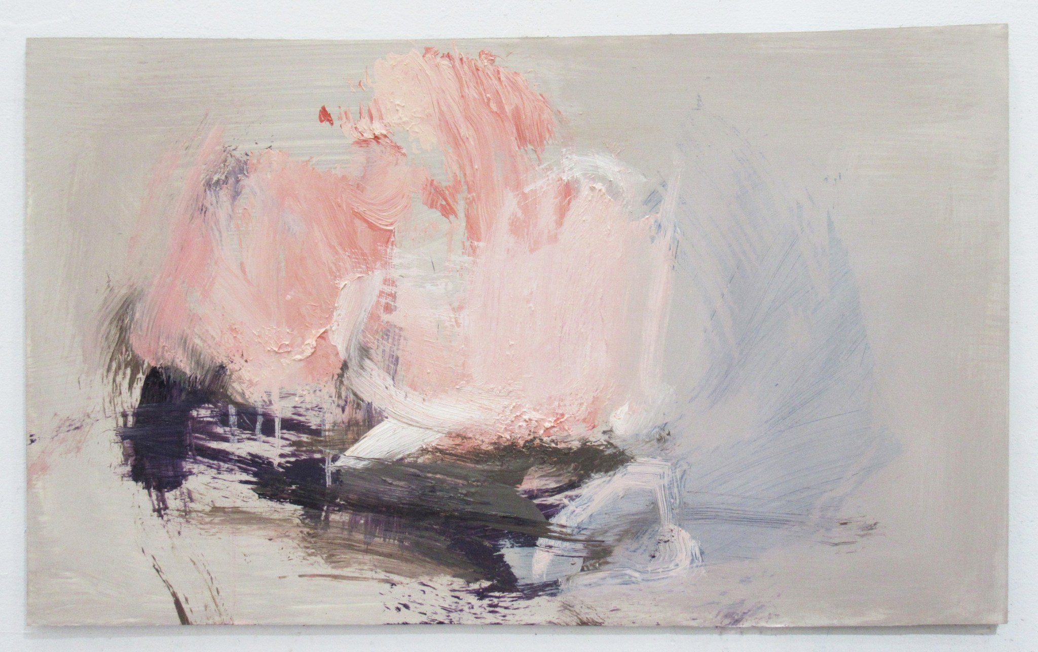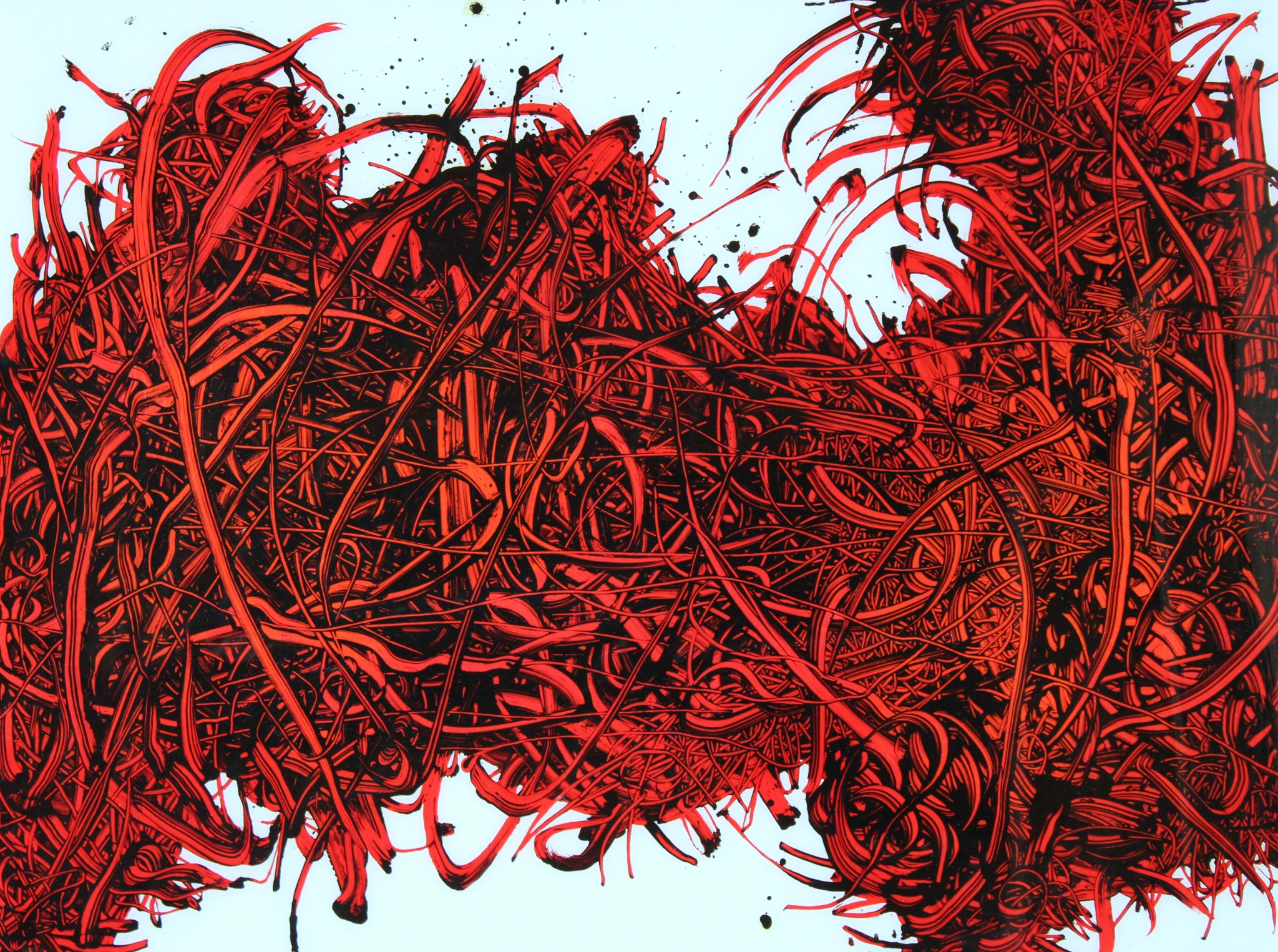 The gestural marks of Nakashima’s abstract paintings are an amalgamation of broken Japanese calligraphy and smudged Western impasto. The near-graspable masses in one corner are found immediately disrupted by the forces of colors, becoming nameless forms that float, merge and drip simultaneously. The “Matter series” as she refers to them, reflect psychological states or fragments of memories, and they continue to evolve and mutate, preventing any attempt at cohesion, impossible to come together as a whole. Such incomplete states seem to both connote and honor her experiences of mixed-cultural life that can only exist in the “in-between”.