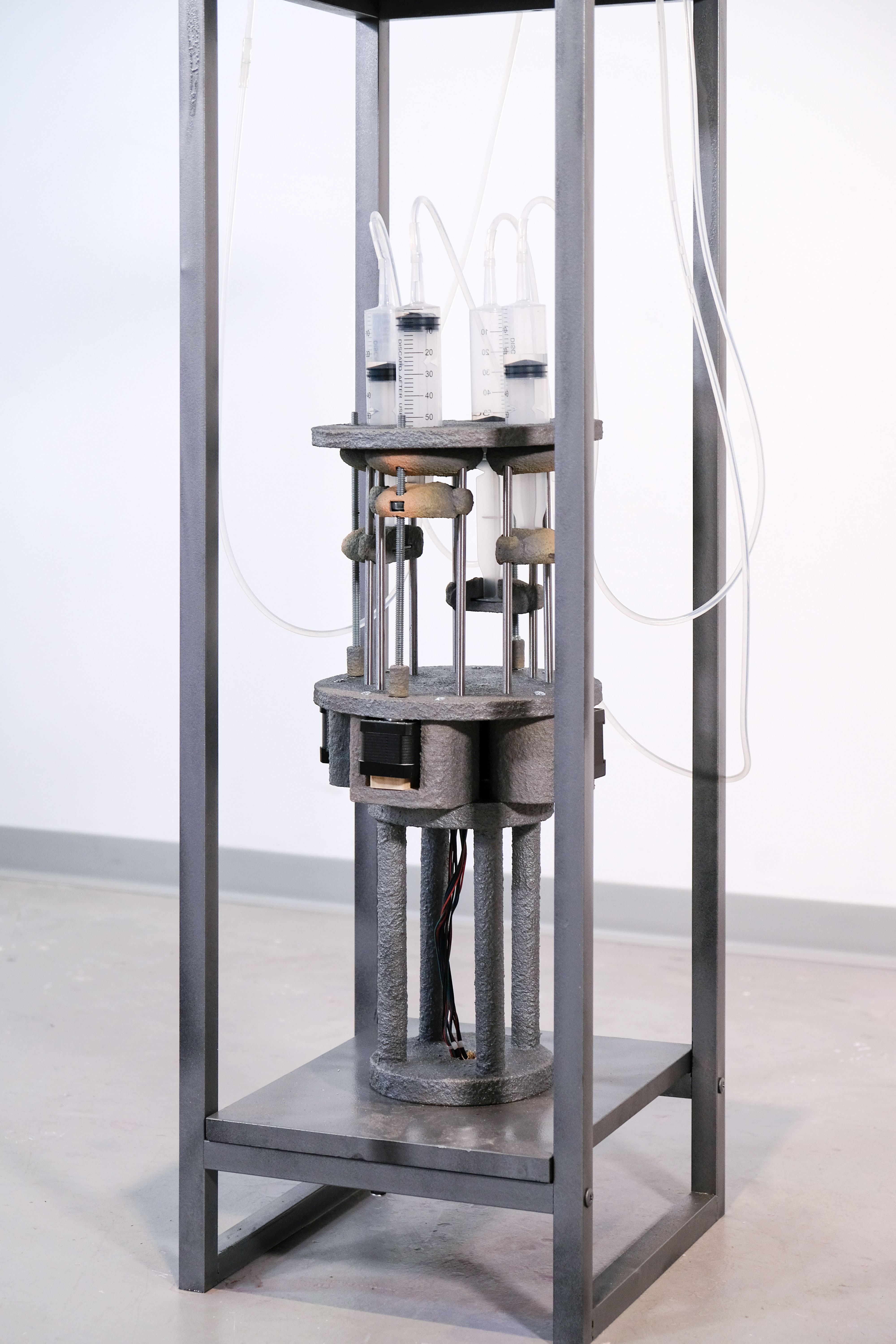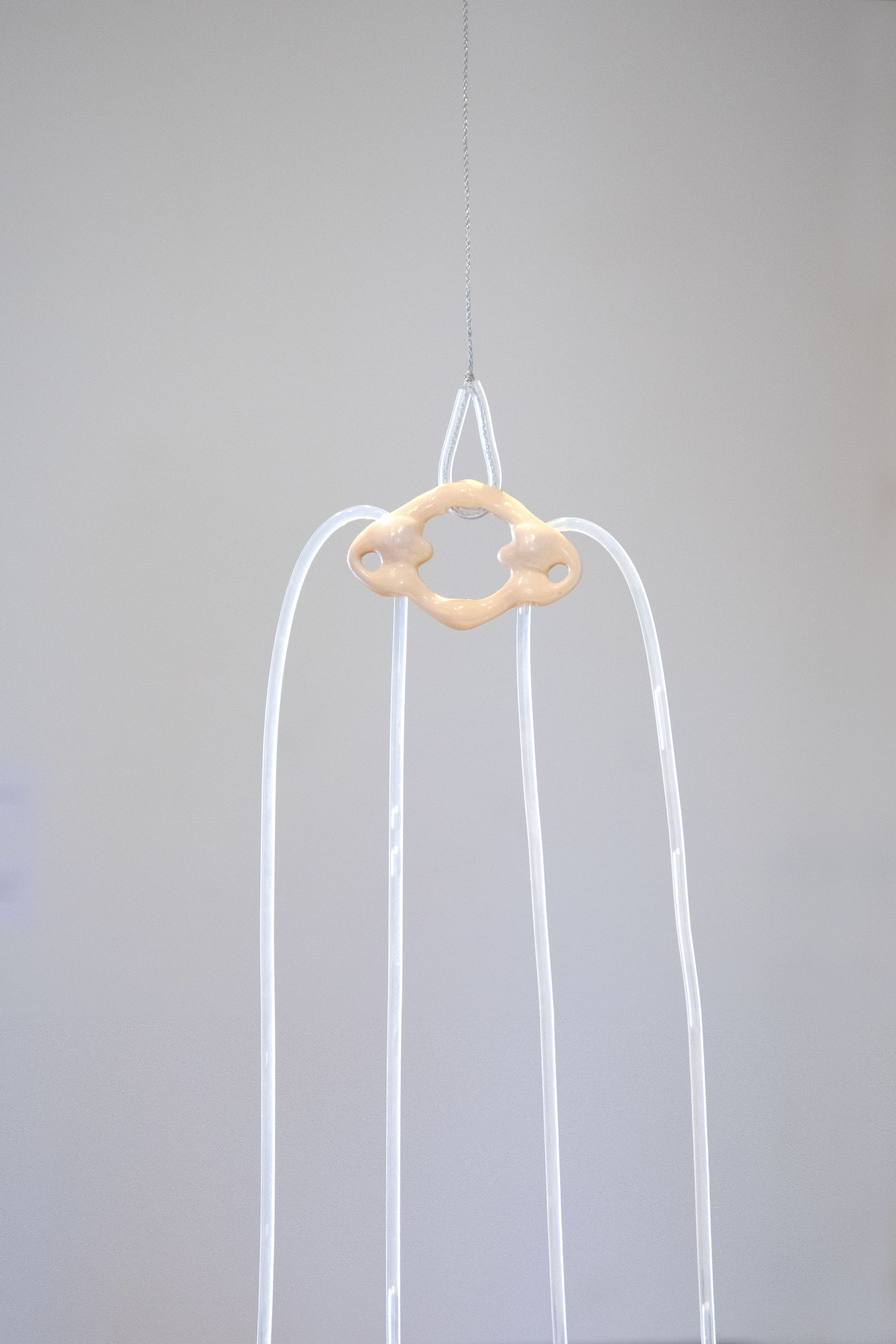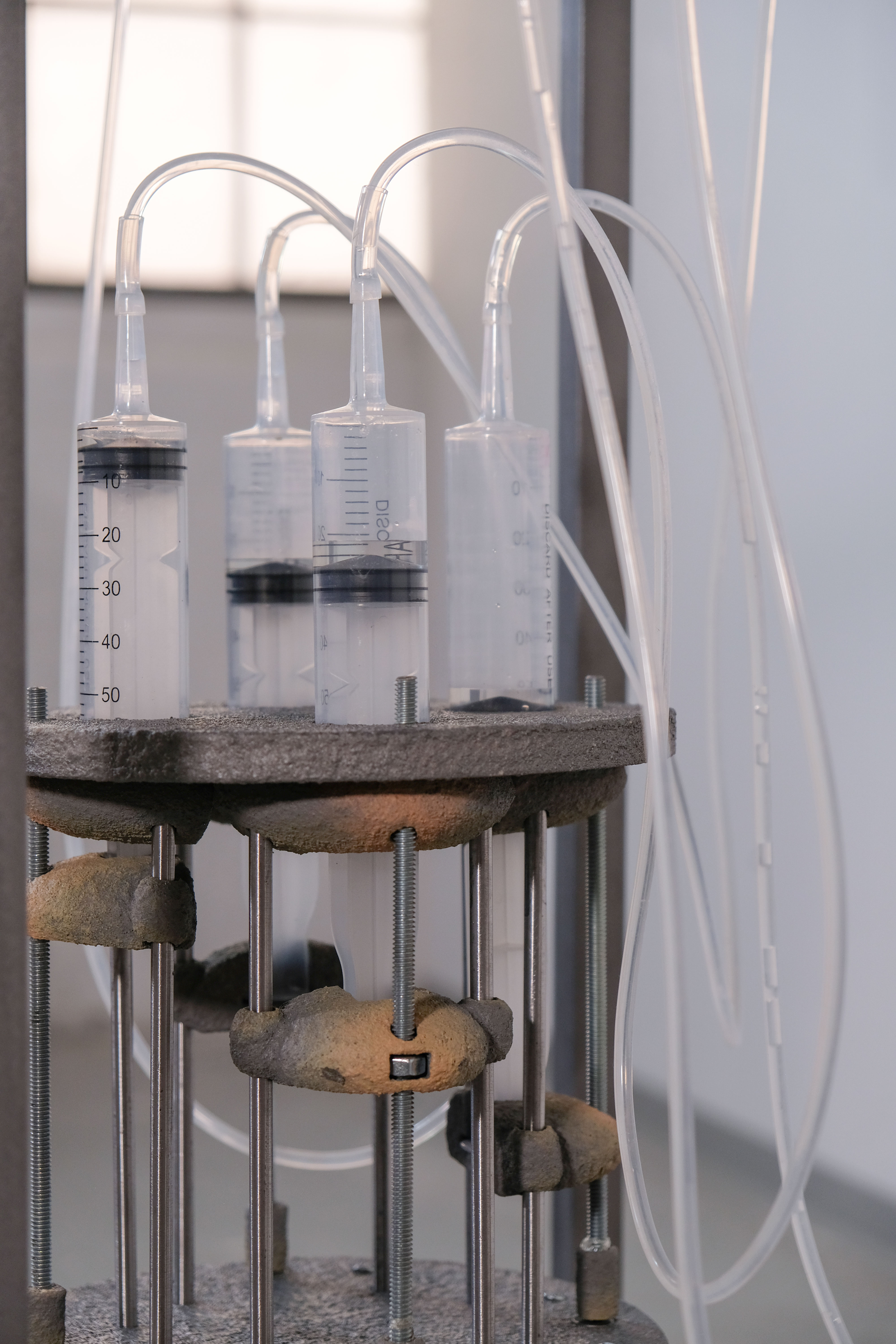 by Inna Babaeva, blown glass and chemical lab stands, 36 x 42 x 16 in, 2021