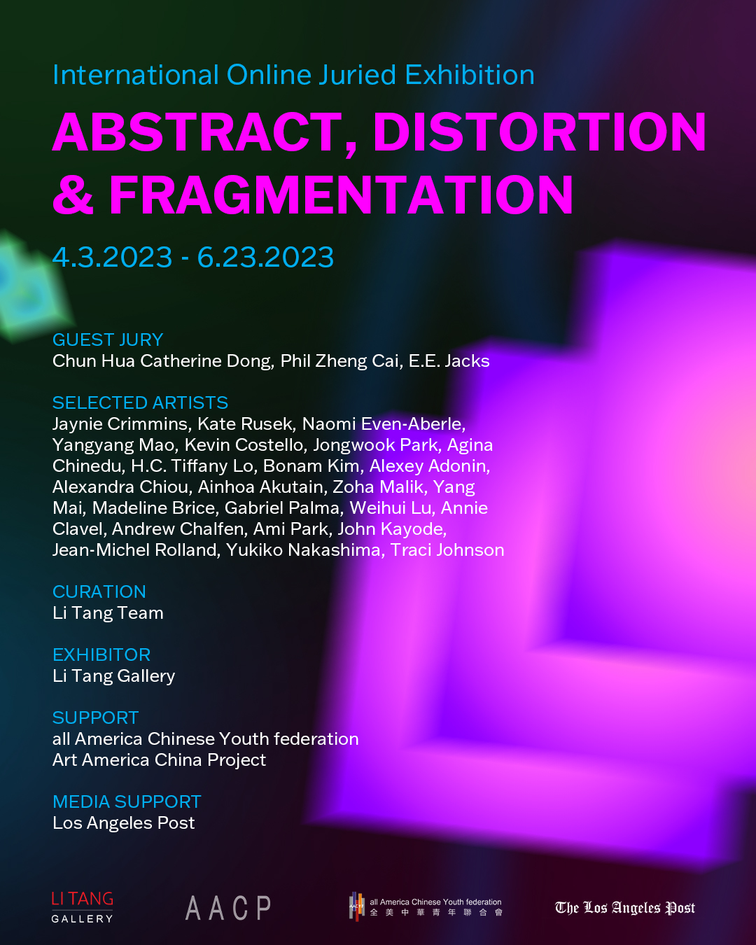 Artists at any stage of their career are invited to submit their work for consideration by our guest jury Chun Hua Catherine Dong, Phil Zheng Cai and E.E. Jacks. We had an overwhelming response to this call and received 1335 artwork submissions from all over the world. The overall high quality of the submissions we received made the jurying process a difficult one. The online group exhibition is curated by the Li Tang team. It will be promoted on the Li Tang gallery website, social media, and press coverage in the United States and China.