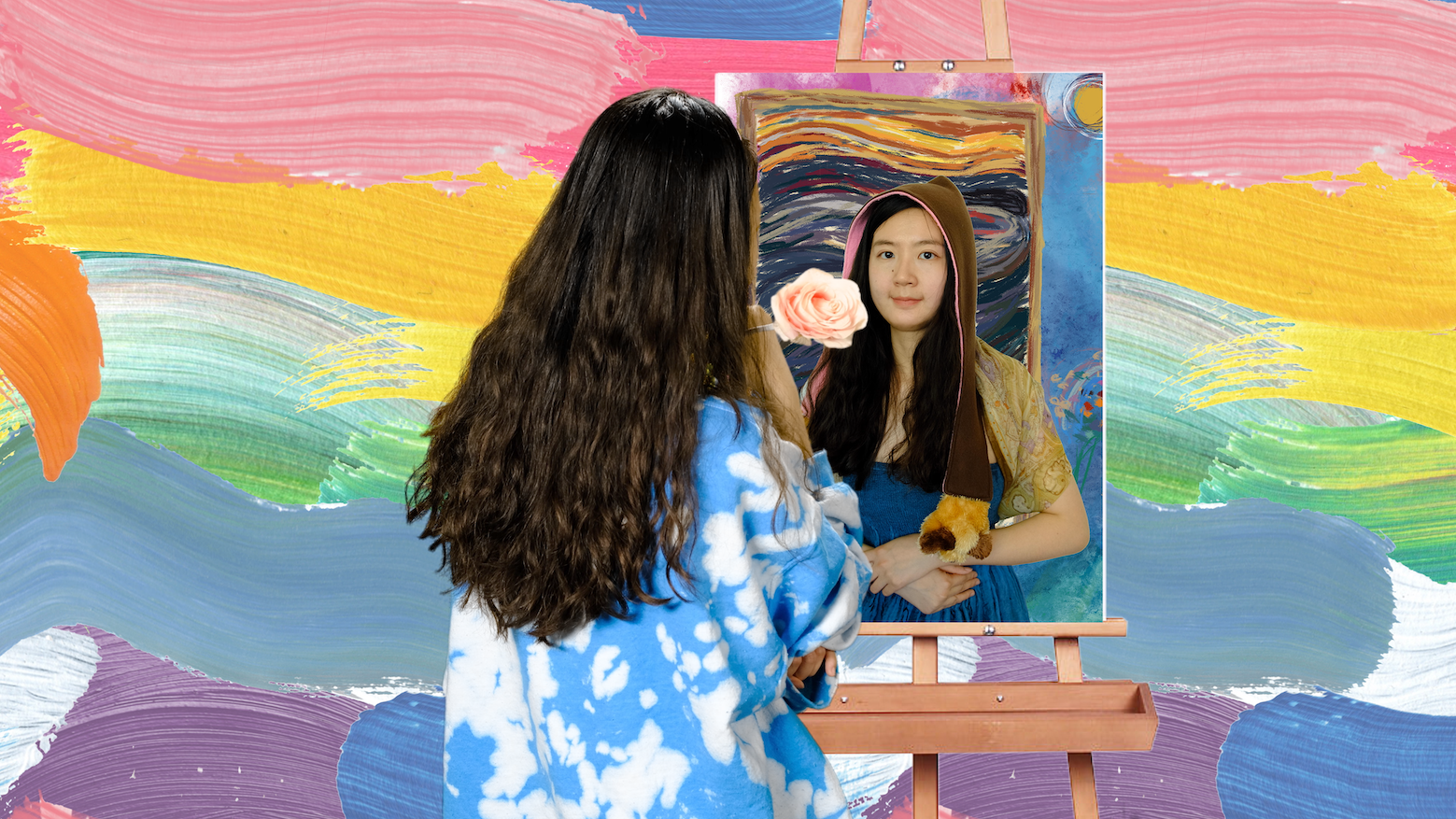 by Alice Yutong Hua, Bond paper, inkjet print, soft pastel, acrylic on panel, 18 x 24″, 2024