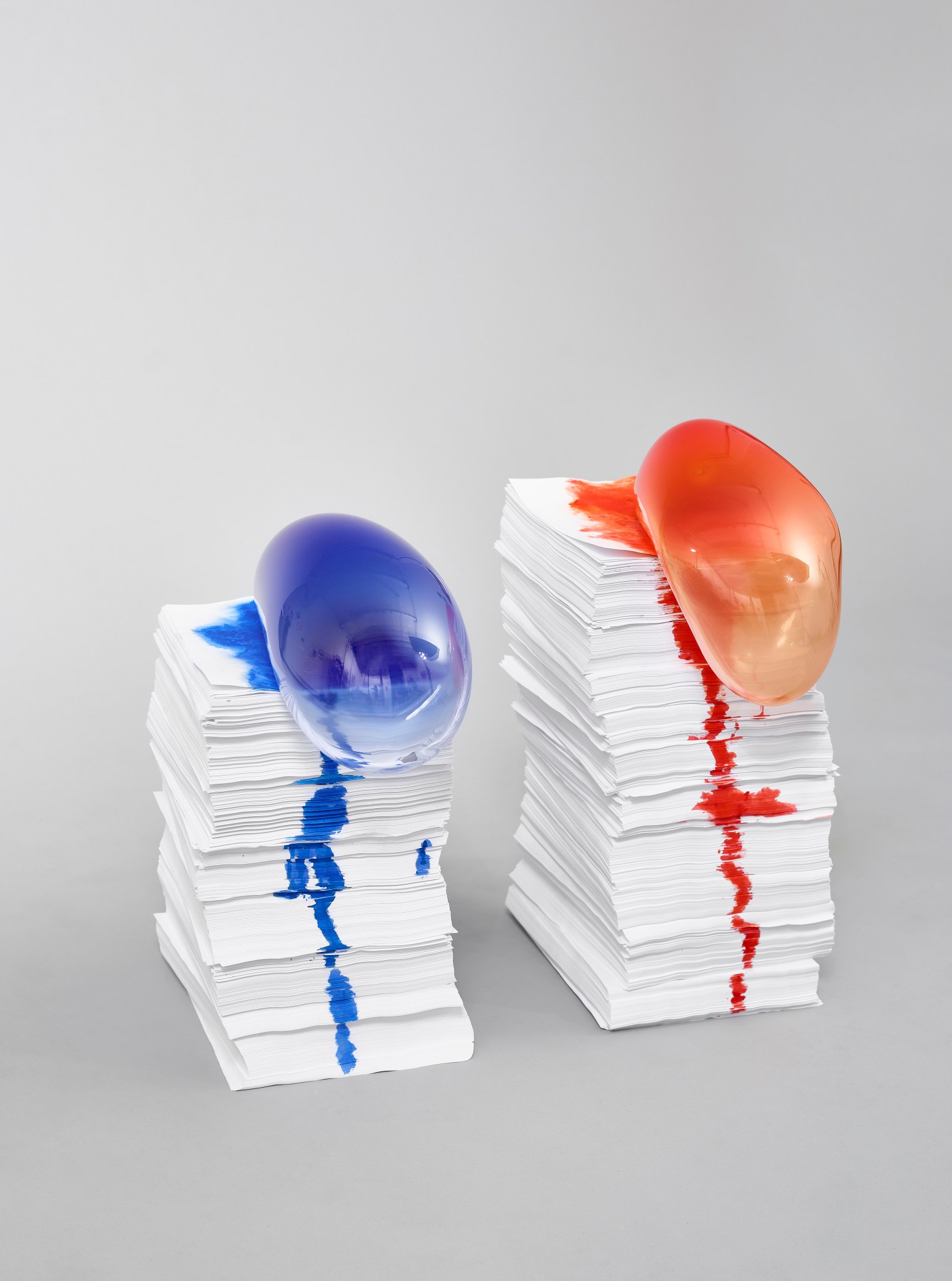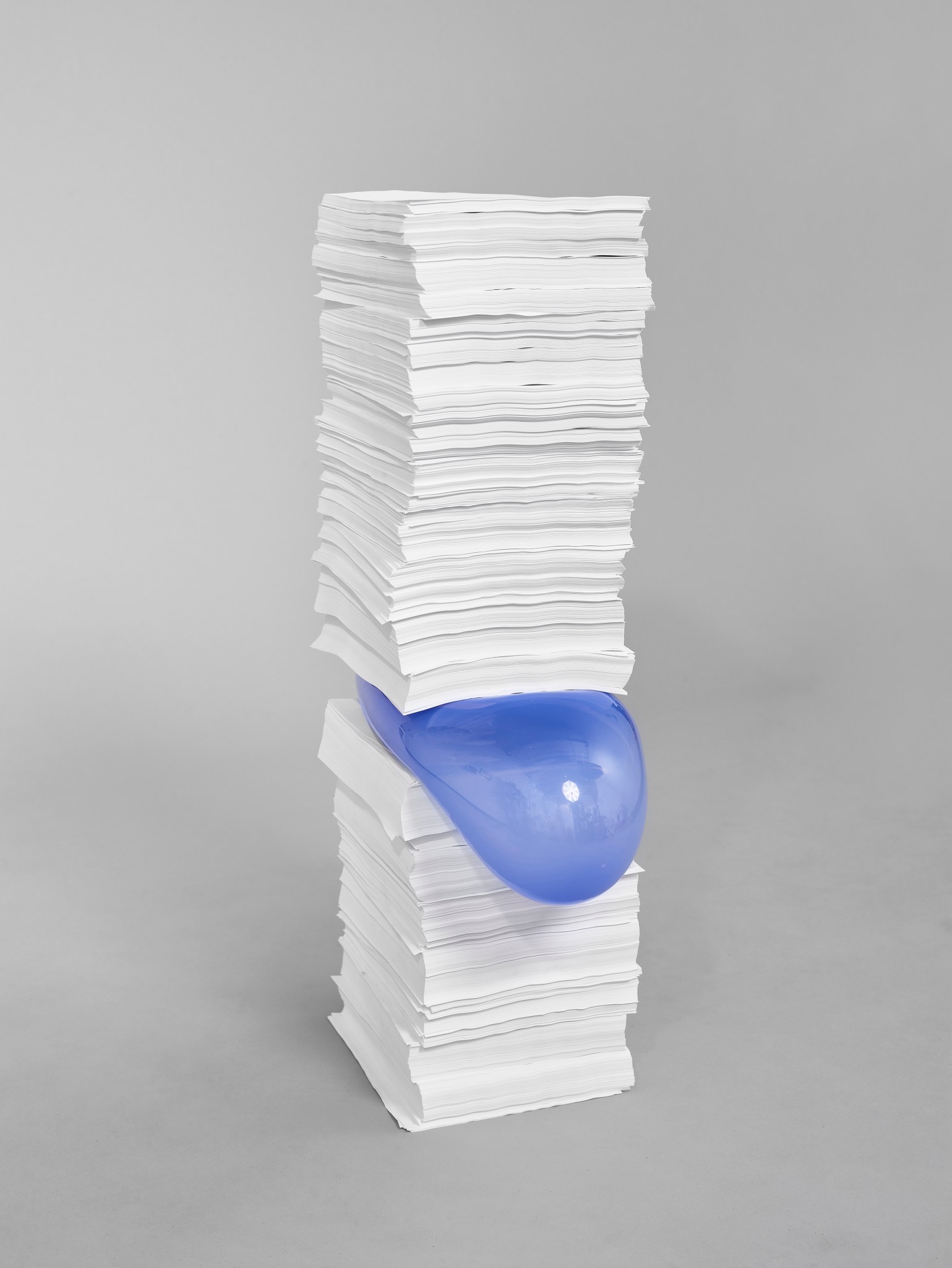 by Inna Babaeva, blown glass and copy paper, 40 x 9 x 18 in, 2018